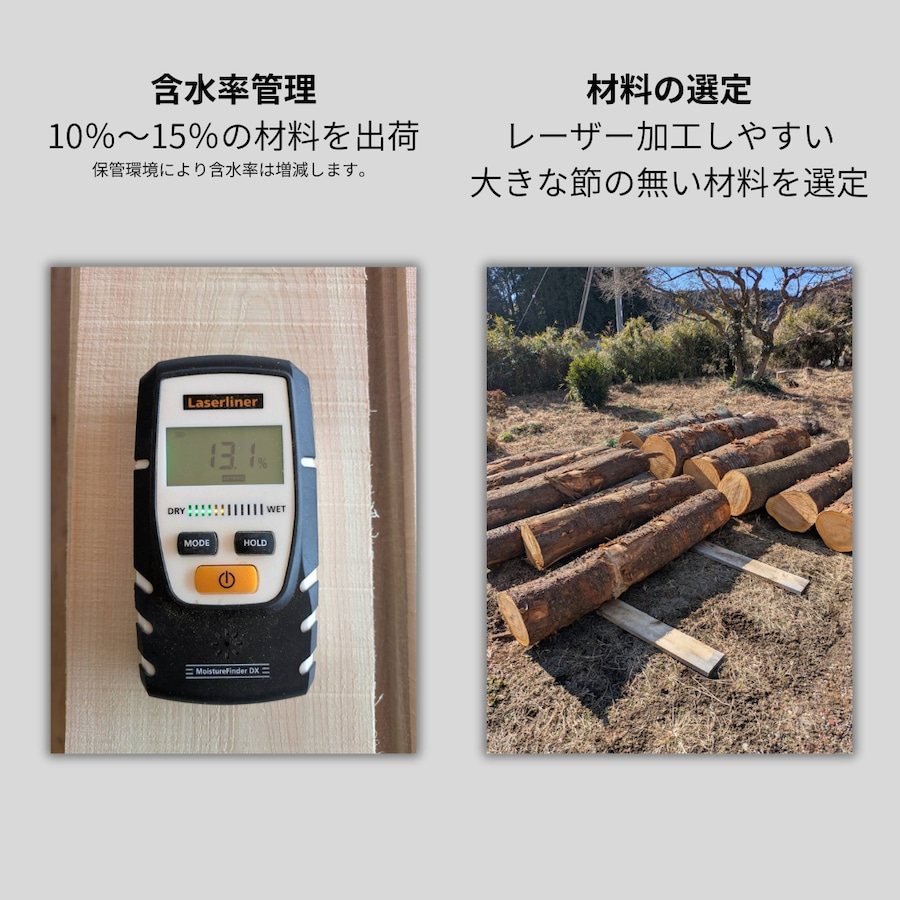 木材乾燥済み。商品到着後すぐに加工に使えます。