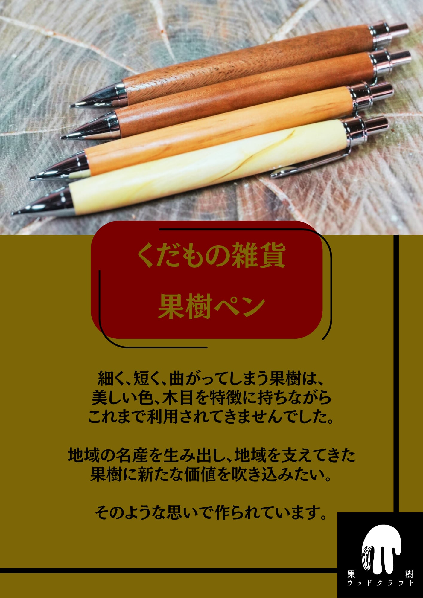 くだものの木から作る木軸ペン